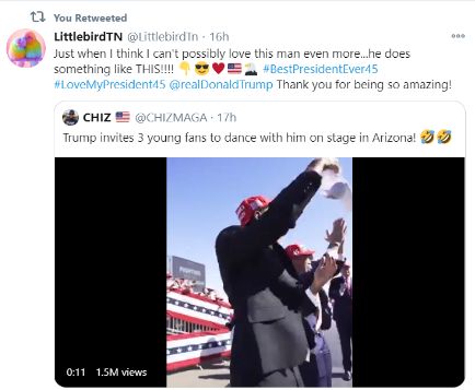 This Twitter reply came in and it truly touched Team Trump! AdaddyBoo...do you realize how you lifted the hearts of the people involved with the GREATNESS plan! Your message and messages like this are truly uplifting. Thank you Patriot!!!