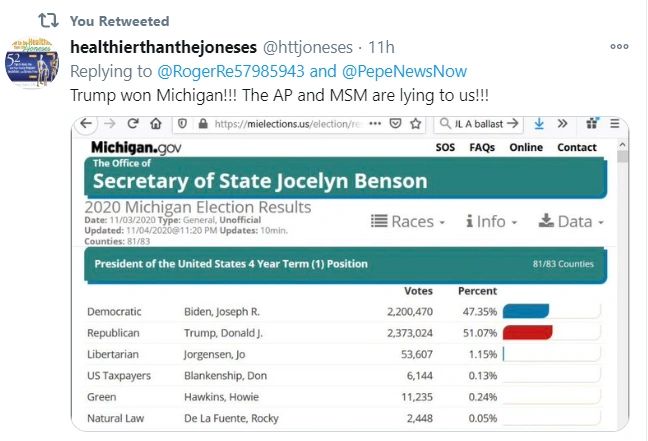 Clearly President Trump won Michigan and the media is calling it for Biden: